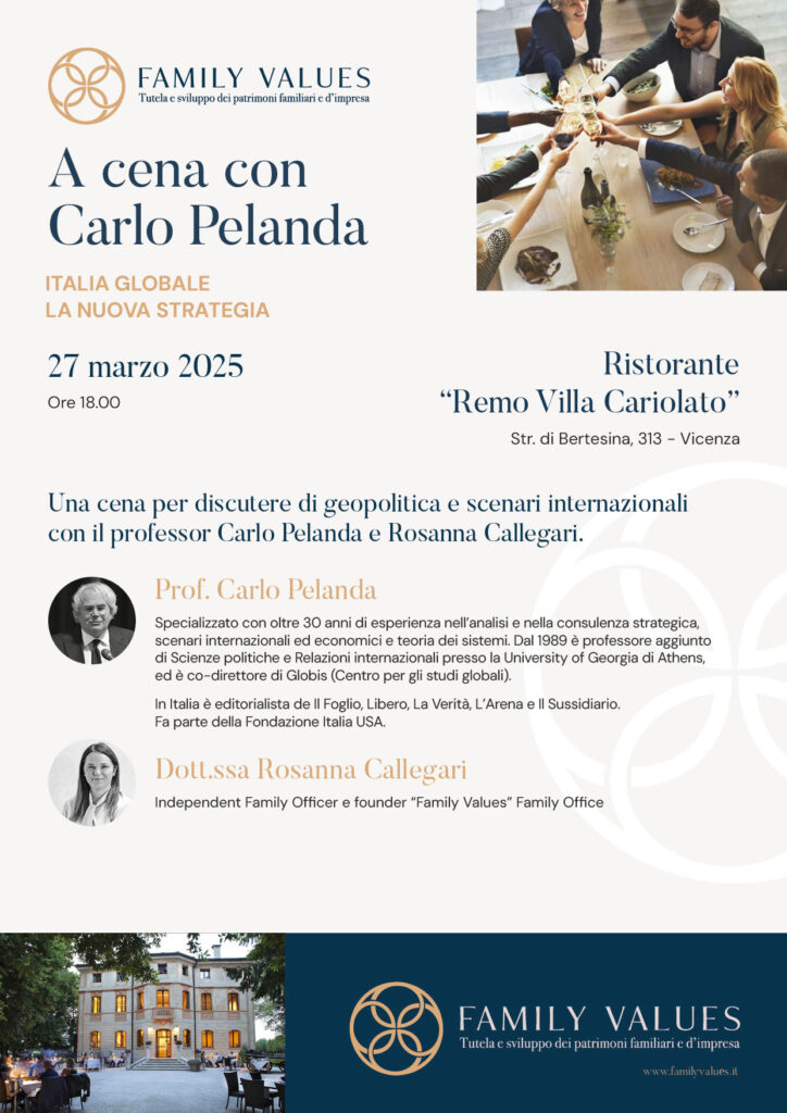 Una cena per discutere di geopolitica e scenari internazionali con il professor Carlo Pelanda e Rosanna Callegari.